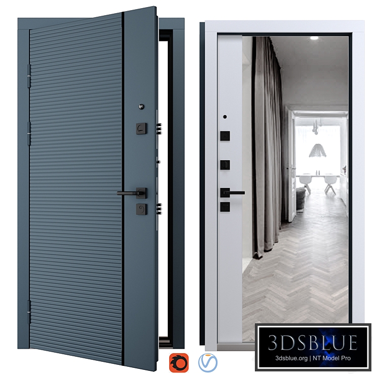 Entrance metal door Matrix (Strage) Size 900 x 2050 mm Upper lock Kale 257L 5 Bottom lock Kale 252R W/B The archive contains CoronaRenderer and V-ray max files, fbx and obj files.