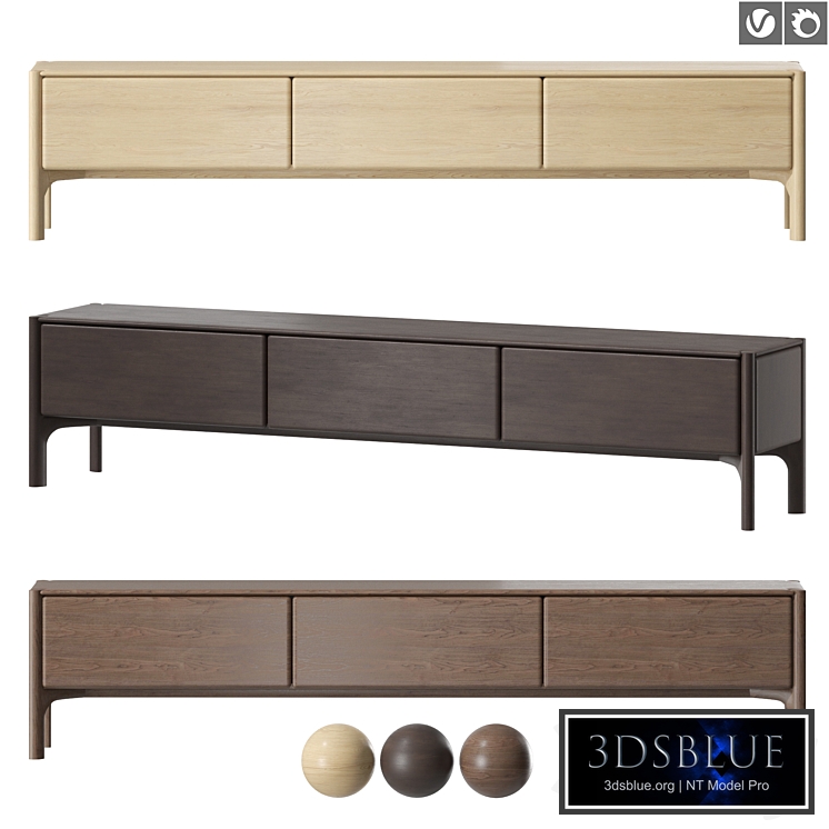 Ethnicraft PI TV Cupboard Polygons: 18084 without turbosmooth modifier Vertices: 18276 without turbosmooth modifier Dimensions: (WxDxH) (mm) 2420x450x530 https://ethnicraft.com/gb/en/p/10151345/pi-tv-cupboard