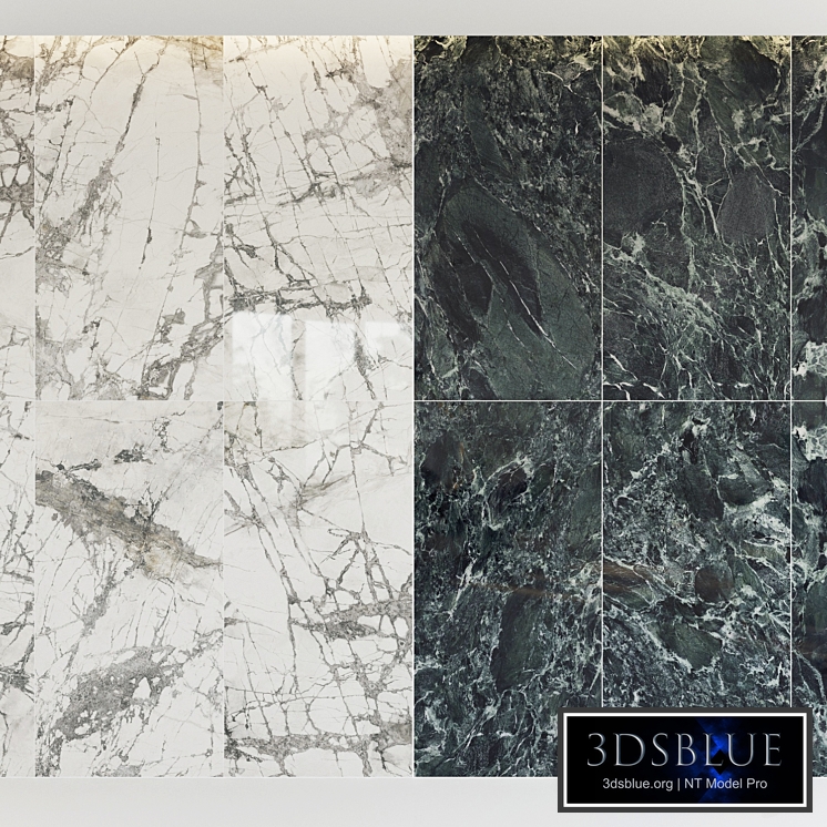 Factory: FMG Collection: MAXFINE Marmi Name: Aosta green marble, Calacatta gray Formats and number of textures for each color: -300x150 (4 pcs) -150x150 (8 pcs) -150x75 (16 pcs) -Material was created without plugins using CoronaMultiMap (analogue of MultiTexture) -Textures are ready to use with MultiTexture. Archive 3DS MAX2016 + Corona4 + OBJ + MTL (for opening corona 1.7 and higher)