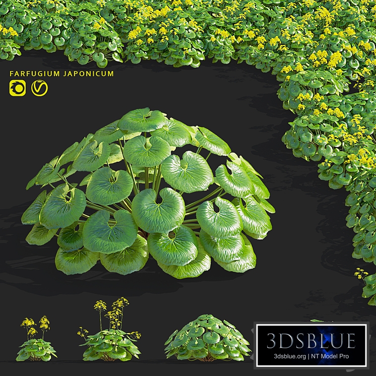 Total Polys 132 775 Verts 162 236 Farfugium_japonicum_001 Polys: 40867 Size: X: 45 cm. Y: 45 cm. Z: 52 cm. Farfugium_japonicum_002 Polys: 56136 Size: X: 77 cm. Y: 72 cm. Z: 70 cm. Farfugium_japonicum_003 Polys: 17886 Size: X: 97 cm. Y: 96 cm. Z: 51 cm. Farfugium_japonicum_004 Polys: 17886 Size: X: 94 cm. Y: 91 cm. Z: 45 cm. Archive include: 3ds max 2012 Vray 3ds max 2012 Corona OBJ standard material (4 separated files) V-ray mat Сorona mat Textures Have a nice use!