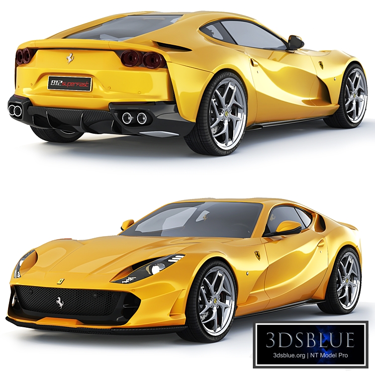 The Ferrari 812 Superfast has a mesmerizing and eye-catching design. I would like to note the long hood, hiding underneath a powerful power plant and stylish elongated headlights, next to which are located small air intakes, giving the new product a swift and aggressive look. The front bumper houses a large air intake, covered with black plastic mesh, and is capable of passing huge air currents to cool the large engine under the hood. The main elements of the model are prepared for smoothing TurboSmooth (2 Iteration). The elements of the body, wheels, interior, dashboard have been worked out. Polygons - 244,134 Vertices - 202,907