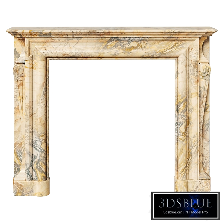 A late 18th century Louis XIV style fireplace in rich and variegated Sarrancolin Fantastico marble. The stepped shelf steps back to follow the returns on the jambs, which have outer left and right brackets with twisted volutes and twisted end blocks above them. Model is assembled for subdivision. When using OBJ, please apply MeshSmoth/TurboSmoth with 2-3 iterations. https://www.pamono.com/antique-louis-xiv-style-fireplace-mantel-in-marble-1790 Dimensions: W55.1" x D15.4" x H44.5"