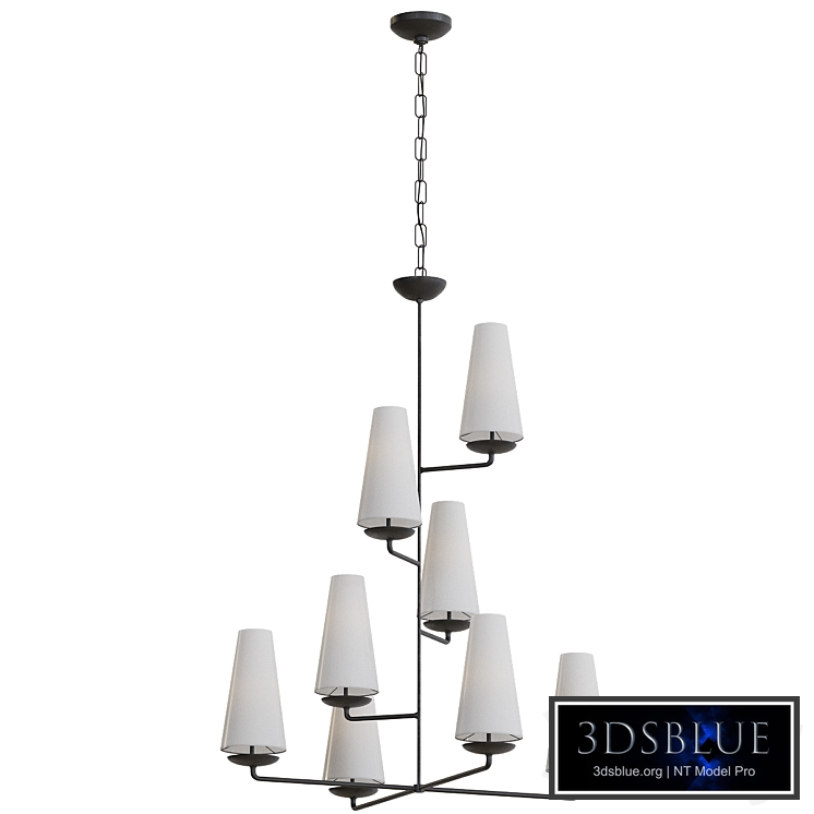 Fontaine Vertical Chandelier designer AERIN Specifications in cm Height: 114.30 cm Width: 86.36 cm The Fontaine by AERIN embellishes mid-century aesthetics with a modern feel. Sculpted metalwork in aged iron or gilded plaster enhances smaller spaces, while larger pieces in the collection add a stylish focus to dining or living rooms. The conical linen shades provide clean lines and warm lighting for any space, whether from a wall sconce or chandelier. https://www.visualcomfort.com/fontaine-vertical-chandelier-arn5204/