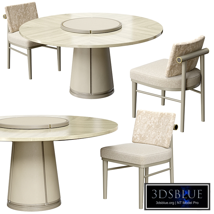 Frato Auburn Sakai Dining The AUBURN Dining Table is a stunning centerpiece designed for memorable gatherings, featuring a unique rotating Lazy Susan that enhances social dining experiences. Its exquisite sunburst-patterned top, combined with faux leather sides and polished stainless steel details, exudes elegance and sophistication. Taking inspiration from the Oasakan city, the SAKAI Dining Chair is an instant icon. The shape leans towards minimalist, while brushed brass and satin open pore details elevate the overall design. https://www.frato.com/products/auburn-dining-table https://www.frato.com/products/sakai-dining-chair DIMENSIONS W160 L160 H79cm. DIMENSIONS W57 L61 H85cm. Polys 195522 Vert 100750 (Format .fbx, .obj)