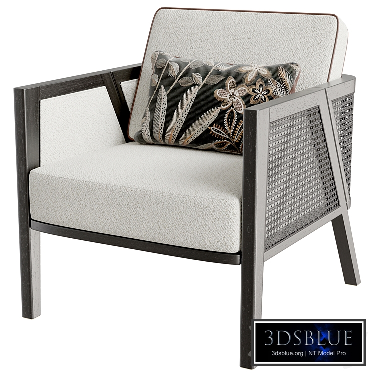 Frato Lipari II armchair The new LIPARI II Armchair captivates with its unique shape, further accentuated by sleek black rattan sides that lend it a distinctive, bold look. Crafted with solid wood and upholstered in the finest fabrics, it exudes both elegance and comfort. Brass detailing adds a luxurious finish, making it a standout piece in any space. https://www.frato.com/products/lipari-ii-armchair DIMENSIONS W72 L76 H83cm. Polys 125812 Vert 71897 (Format .fbx, .obj)