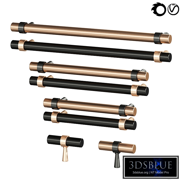 The Gold Boutique Furniture, Rosa Furniture Handles -------------------- In the archive: 2015 MAX(corona+V-Ray) + OBJ +MTL; 3.54 MB of textures. -------------------- https://thegoldboutiquefurniture.com/products/rosa-copper-cabinet-handle?variant=41182199611568 -------------------- - All objects are grouped; - Each object has a Turbosmooth modifier installed (in the scene there are 0 iterations, in the render iteration is set to 1). - Pivot is set up -------------------- Dimensions (mm): 2XL - L228, H34, W12; L - L168,H34,W12; M - L130, H34, W12; XS - L49, H34, W12; -------------------- For Corona render, it is recommended to install version not lower than 1.5, since the glossiness of materials is configured taking into account PBR. -------------------- Those who work in V-Ray version lower than 3.1, be careful, in the materials in the BRDF section there is Microfaset GTR (GGX), if your version is older than 3.1, then the BRDF field will be empty. Select Blinn, Phong or Ward - what is preferable for you.