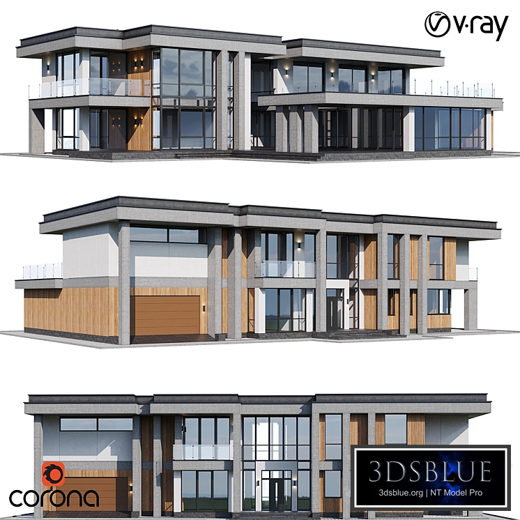 Model of an individual mansion - Materials are all customized - Planken, pavers, all done with the Displacement modifier. For far angles is better off. - Suitable for various angles - Archived models for V-ray and Corona - Light sources included - 3DsMax 2015/2018/Fbx - Poly: 64984 - Vert: 78980 - Those who work in V-Ray versions lower than 3.1, be careful, in the materials in the BRDF section there is Microfaset GTR ( GGX ), if your version is older than 3.1, then the BRDF field will be empty. Choose Blinn, Phong or Ward - whichever suits you best - For Corona render, it is recommended to install a version of at least 1.5, since the glossiness of materials is configured taking into account PBR