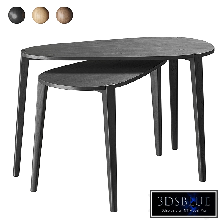 1012 Gilmore coffee table set Divan.ru Size 80*40*50, 70*35*45 cm https://www.divan.ru/product/komplekt-stolov-gilmor-black 3 color options, black, natural, walnut In the archive: MAX2016(corona/vray) + OBJ + mtl + Texture 9492 polygons (2 tables) XForm, there is a scan. Pivot is configured. Turbosmooth can be added if necessary. table, table, scandinavian, coffee, side, side table, sofa, wooden, living room, boho, japandi, oval, Divan.by, sofa, ru, Divanru, sofa.ru, sofaru