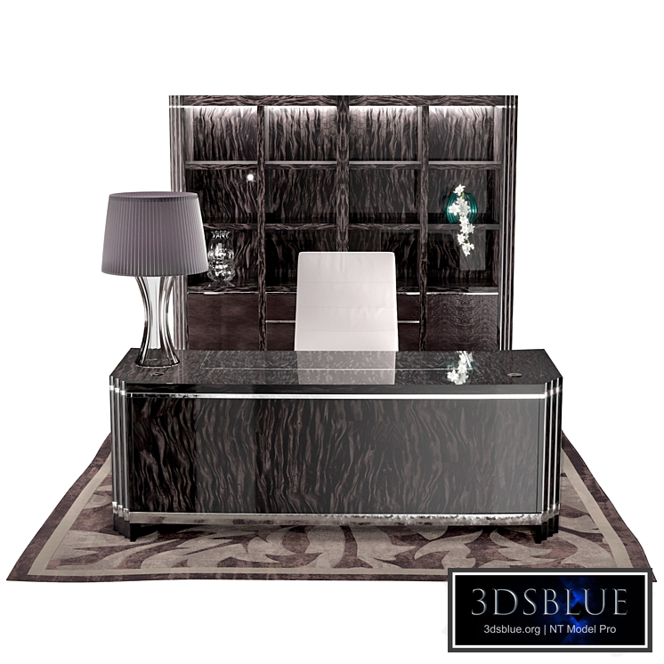 collection of 5 Giorgio Collection Absolute 1.Presidential Desk 2.Double Bookshelf 3.Presidential Office Chair 4.Dafne Large Lamp 5.Carpet Augustus features: Wood texture is 4k generated japanese veneer. Chair has baked 4k leather. scratch maps. relatively low numbers of polys all modifier stacks have been preserved in .max version all chamfer modifiers have been preserved