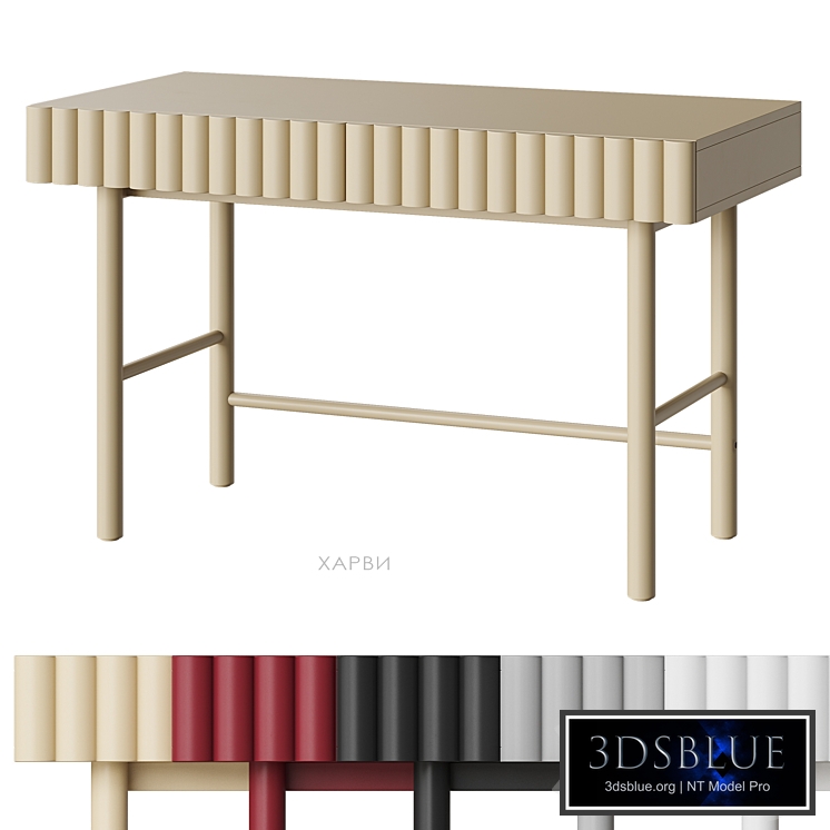 917 Harvey Desk Divan.ru Size 120*60*75 See 5 color options, beige, black, white, bordeaux, gray https://www.divan.ru/sankt-peterburg/product/pismennyj-stol-harvi-beige The model was made in 3dsmax 2019, Corona 4. Saved in 3dsmax 2016, Vray 4 materials were obtained by conversion. In the archive: MAX2016(corona/vray) + OBJ + mtl + Texture 8433 polygons XForm, there is a scan. The pivot is configured. Turbosmooth can be draped, if necessary , desk, Scandinavian, work area, workplace, living room, study, metal legs, relief, simple desk, console, retro, Vasuda, interiorsecrets, interior secrets, dressing table, Divan.by , sofa, ru, Divanru, sofa.ru, divanru, ribbed facade