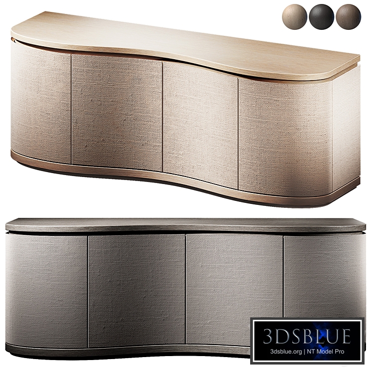 The 3D model contains the Hawthorne cabinet from Palecek. Smooth rounded edges corners and woven fabric front trim. Wavy curved front facades. Oak veneer on the tabletop and solid wood base in organic form, complemented by fronts and outer edge in linen fabric. Inside there are three compartments, each with a fixed shelf. Wood with soft texture. 3 color options: light, brown, dark color. Wood materials with seamless textures. Suitable for styles: modern, minimalism, Scandinavian, eco, organic, Japandi, Scandi, ethnic and others. You can use turbosmooth if needed. All options are present and ready to render, no need to assign a material. Objects, materials and textures are logically named. Files are present: .MAX .FBX .OBJ , all textures. The materials used are supported in all versions of Corona and V-Ray. The scene is optimized for fast loading, the model is tested under interior lighting. In my profile you can find other 3D models of decor, furniture, lighting, ready-made solutions for the interior.