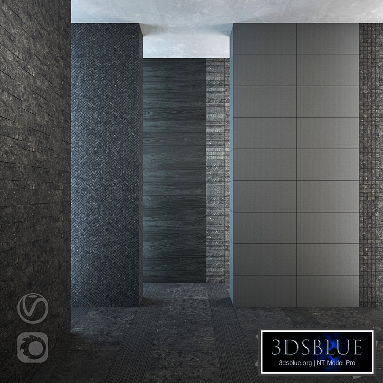Set of mosaics and tiles Italon collection Room Color Black Stone All tiles and mosaics are made up of separate objects. Formats: Tile 120X60 matte Tile 60X60 matte Tile 30X60 matte Tile 30X60 matte (flu) Tile Multilayn 6X30 opaque (flu) The tile is monophonic 40X80 opaque Tile 120X20 opaque (tree) Large mosaic 30X30 matte Mosaic Cross 31.5X29.7 opaque (inclined) Mosaic Brick 3D 29.6X79.6 matte (volumetric) The archive has a separate model for Vray and Corona, with its own customized material libraries. Who works in the V-Ray version lower than 3.1, be careful, in the materials in the BRDF section there can be Microfaset GTR (GGX), if your version is older than 3.1, then the BRDF field will be empty. Choose Blinn, Phong or Ward - which is preferable for you. For Corona render, it is recommended to install a version of at least 1.5, since the glossiness of materials is configured with PBR in mind.