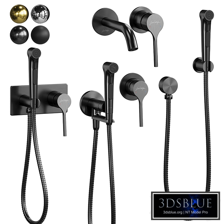 Set of mixers Jacob Delafon Elate. 4 colors: chrome, matte black, glossy black, gold. The color of the metal is easily edited by the CoronaColor/VRayColor card named "Metal Color". The model has a correct scale. The dimensions of the mixers correspond to the real ones. 1. Wall-mounted washbasin mixer Jacob Delafon Elate E28318 2. Hygienic shower Jacob Delafon Elate E25838 3. Jacob Delafon Elate E24610 Hygienic Shower 4. Hygienic shower Jacob Delafon Elate E28317 TurboSmooth applied for 1 iteration during rendering. CoronaLegacy materials, renders are made in Corona. The model is correctly displayed in VRay 3ds max 2018, VRay+Corona, OBJ all mixers can be found here - https://santehnika-online.ru/brands/jacob_delafon/elate/ other mixers - http://3dsky.org/collection/shared/5350029