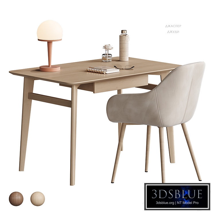 824 Workplace Divan Ru Jasper desk Divan.ru Size 120*75*75 cm https://www.divan.ru/product/pismennyj-stol-djasper-light Judy chair Divan.ru Size 59*58*89 cm https://www.divan.ru/product/stul-djudi-velvet-beige Decor lamp Sphere, sketchbook, book, glasses, water bottle, Diffuser with white flower, pen The model was made in 3dsmax 2019, Corona 4. Vray materials were obtained by conversion. In the archive: MAX2016(corona/vray) + OBJ + mtl + Texture 28294 polygons XForm, there is a scan. Pivot is configured. Turbosmooth is applied (in viewport - 0 iterations, in render - 1 iteration). In OBJ the stack is collapsed chair, armchair, desk, table, scandinavian, living room, dining room, armrests, soft, wooden legs, soft, Divan.by, sofa, ru, Divanru, divan.ru, divanru