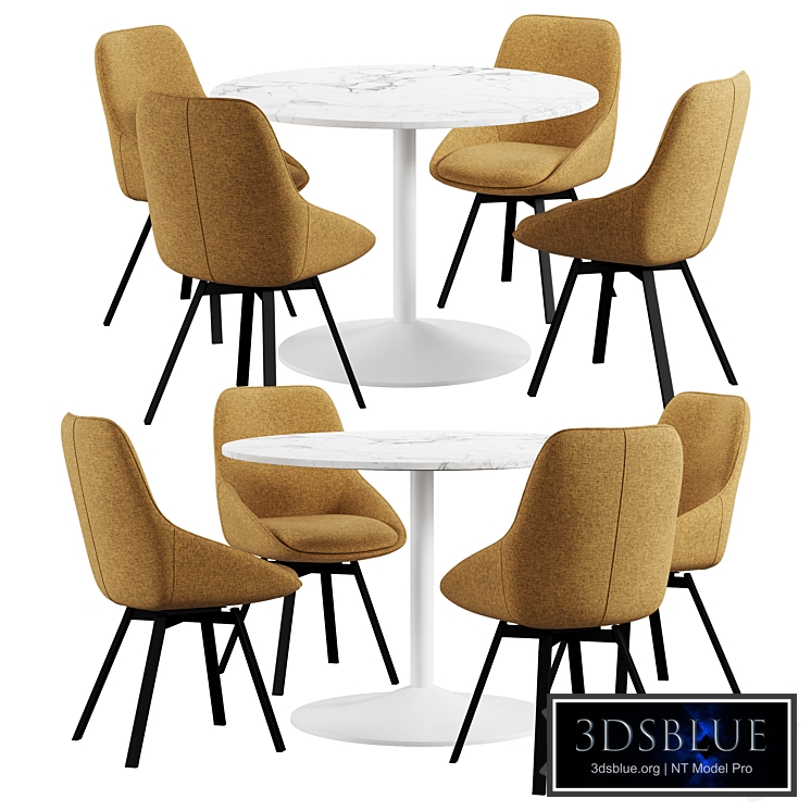 La Forma Haston chair https://www.barcelonadesign.ru/catalog/stulya_3/stul_haston_gorchichnyy/ Dimensions: 50 x 59 x H 86 cm ________________________________________________ Dara dining table https://www.sohome.nl/bendt-ronde-eettafel-dara-110cm.html#76=1479 Dimensions: D110 H75 cm _______________________________________________ Polys: 60,428 Verts: 31 358 Turbosmooth enabled in Render Iteration - 2. Who works in V-Ray version lower than 3.1, be careful, in the materials in the BRDF section there is Microfaset GTR (GGX), if your version is older than 3.1, then the BRDF field will be empty. Choose Blinn, Phong or Ward - which is preferable for you. " If CORONA version is higher than 1.4: “For Corona render, it is recommended to install at least version 1.5, as the glossiness of materials is adjusted with PBR in mind.