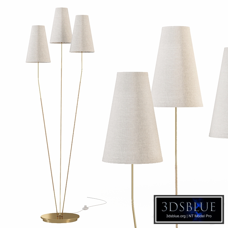 Triple floor lamp made of brass, linen and rattan, Amaya copper/natural LA REDOUTE INTERIEURS https://www.laredoute.ru/ppdp/prod-350295467.aspx#searchkeyword=amaya&shoppingtool=search Height 155.2 cm Diameter 50 cm Lampshade diameter 9/18 x H26 cm Stand diameter 28 cm Article 4995864 / GMA931 • Metal frame with brass finish • Metal stems with brass finish, covered with rattan • Three cone-shaped linen lampshades
