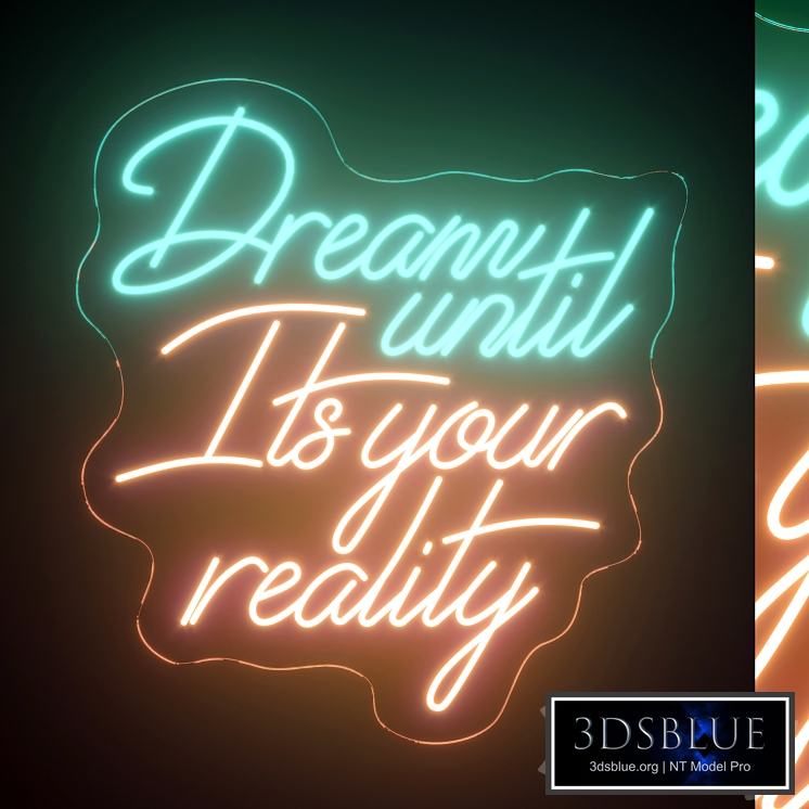 Light modules Set 200 Neon - Neon inscription Dream until its your reality, signboard, dream, motivator, motive, inspirer, stimulus - VRayLightMtl (CoronaLightMtl) is used as the glow of the LEDs - The power of the LEDs must be adapted to your scene, taking into account the light perception of the camera - File Formats: 3dsMax 2011 (Vray, Corona), FBX, OBJ - preview renders were done in the crown - Polys: 16002 Verts: 16269 Neon sign collection: https://3dsky.org/collection/shared/5081413 Neon text collection: https://3dsky.org/collection/shared/5081362