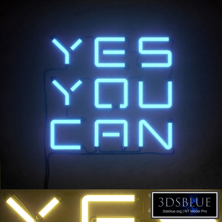 Neon Light modules. Set 84. Neon - The inscription Yes You Can, Yes You Can, LED letters, neon sign, neon signs for a bar, club, sports, loft, techno, motivator, motive, inspirer, stimulus. - VRayLightMtl (CoronaLightMtl) is used as LED glow - The power of the LEDs must be adapted to your scene, taking into account the peculiarities of the light perception of the camera. - File Formats: 3dsMax 2011 (Vray, Corona), FBX, OBJ, Textures - preview renders were done in the crown - Polys: 21668 (43504) X2 - Verts: 22274 X2 Previous collection: https://3dsky.org/3dmodels/show/light_modules_set_83_neon
