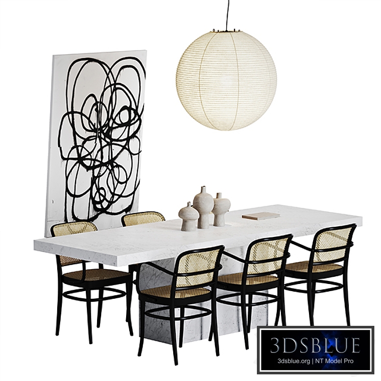 - Chair artilleriet no 811 (replica on the Prague chair Josef Hoffmann) in two materials: light wood and black lacquer - Marble table (unnamed) - Ceiling light Vitra Atari 75A - reproduction of the painting by Christopher Wool (Christopher Wool) - Vases Paula Greif - Book artist Agnes Martin (Agnes Martin) sweeps on all models made the stack is not folded on the vases used completely unique textures made by me in the Substance Designer