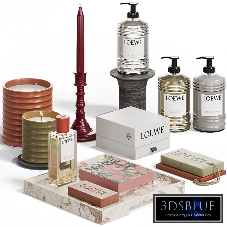 Other models with cosmetics http://3dsky.org/collection/shared/5188988 Loewe tomato leaves decorative set All my models are optimized, made for anti-aliasing (where it is needed), do not have unnecessary geometry and unjustifiably heavy maps. Archives are as light as possible without losing quality, objects and materials are logically named. The archive contains a 3ds max 2021 scene for Corona + fbx and obj files. Renders for the preview were made in Corona Render 10. On the Corona Legacy Mtl. For Corona render, it is recommended to install version no lower than 1.5, since the glossiness of materials is configured taking into account PBR