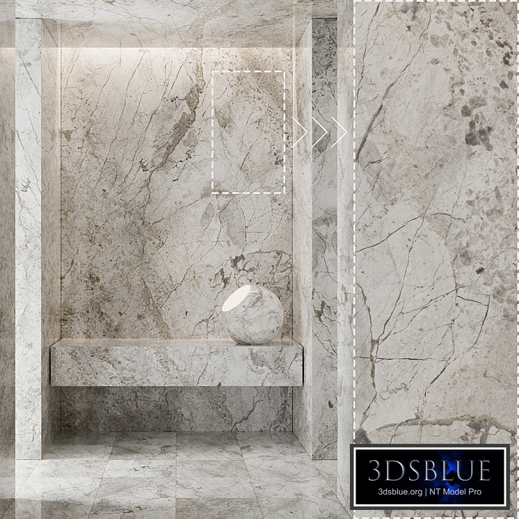 Marble Stone Material. Very High Detail Textures. Include Corona Tile Material. The archive contains .MAX and .OBJ files with customized materials, as well as textures. diffuse, glossiness. Format: JPG Corona Render Includes four 3D panels :SLAB,ROUNDED,CUTED,TILE Main texture resolution:9000 ×4700 PX