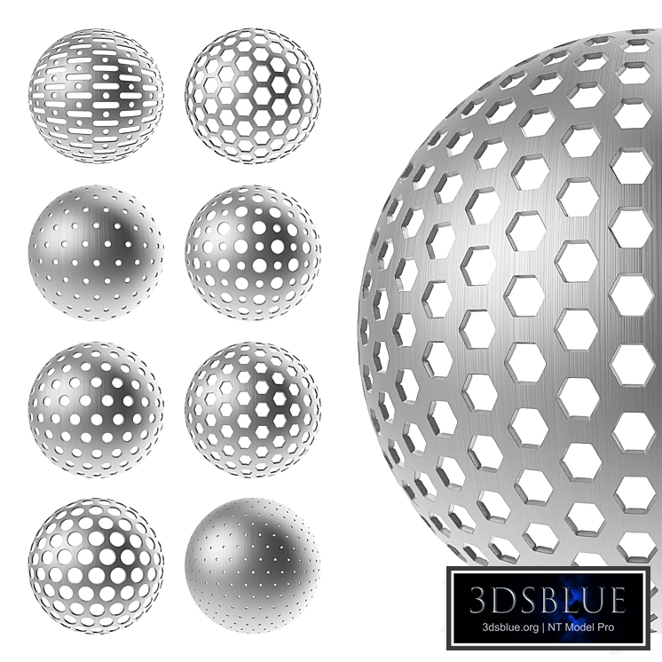 Perforated metal sheet (Set 001) (Seamless texture) Collection: Decorative metal grille 8 types of perforated mesh The grinding of the metal can be adjusted or removed altogether The archive contains: - max2014 VRay, max2014 Corona - FBX Corona, FBX VRay - PNG 25 cards (8 Displacement, 8 Mask, 9 Normal) - Texture resolution 4096x4096