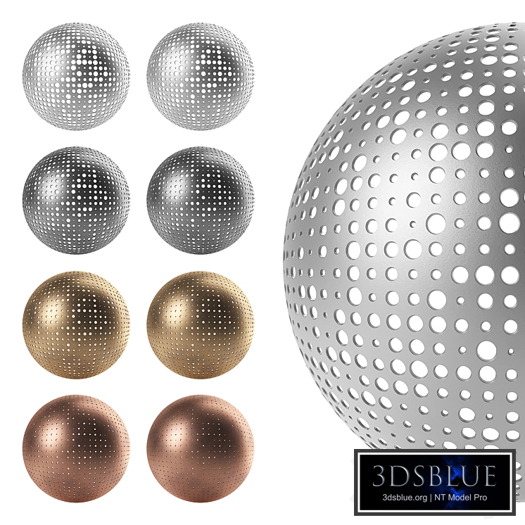 Perforated metal sheet (Set 050) (Seamless texture) Collection: Decorative metal grille 8 types of perforated mesh, 4 shades of metal The archive contains: - max2017 VRay, max2017 Corona - FBX Corona, FBX VRay - JPG 4 maps (3 Base Color, 1 Normal) - PNG 25 maps ( 8 Displacement, 8 Mask, 8 Normal, 1 Roughness ) - Texture resolution 4096x4096