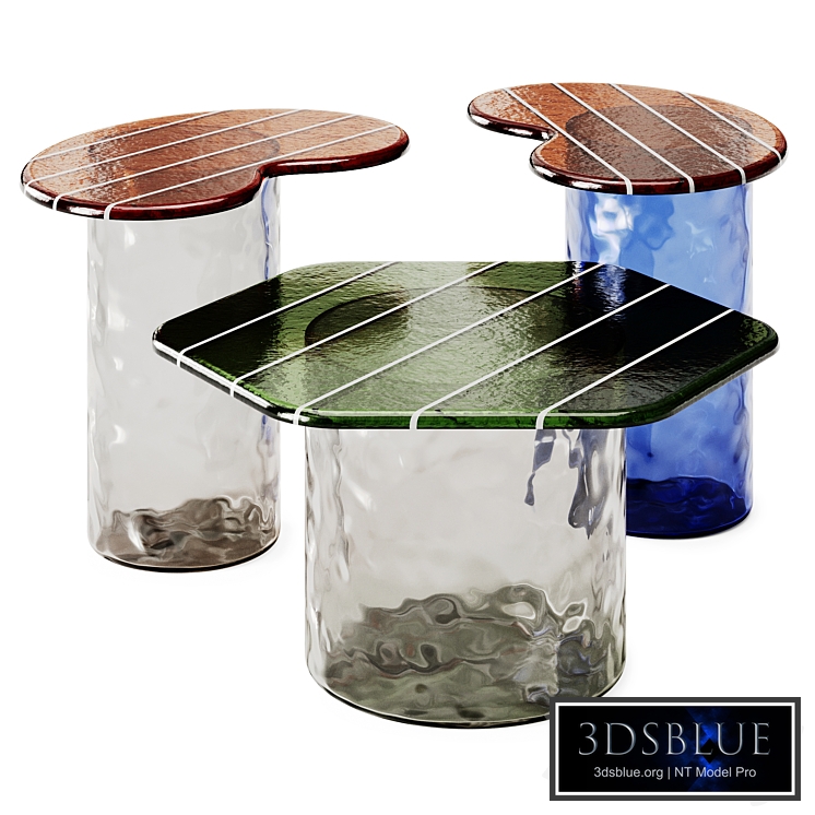 Striche Murano Glass Coffee Table by Miniforms Dimensions: L.58.5 x W.47 x H.31 cm. L.46 x W.31 x H.41 cm. System unit mm / FBX and Obj included / No plugins used.