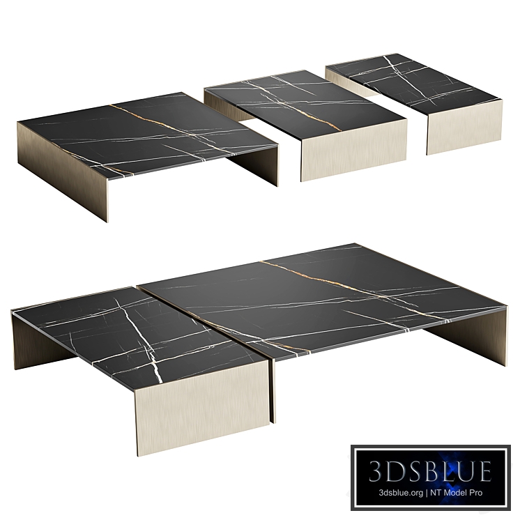 Minotti coffee tables Linha Top - Sahara Noir marble, 16 mm thick Sides - Aluminium, 12 mm thick, varnished Golden Brown color - square 120x120cm h 28cm - rectangular 120x80cm h 28cm - rectangular 120x60cm h 28cm