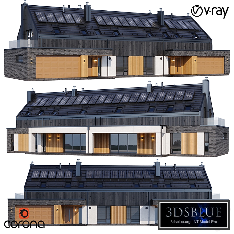 Mansion model - 28.35*13.22*9.26m - The model is made by one object - One multimaterial with names - The materials are all configured - Suitable for various angles - Archived models for V-ray and Corona - 3DsMax 2015/Fbx - Poly: 172428 - Vert: 192565 - Who works in a V-Ray version lower than 3.1, be careful, in the materials in the BRDF section there is Microfaset GTR (GGX), if your version is older than 3.1, then the BRDF field will be empty. Choose Blinn, Phong or Ward – whichever is preferable for you - For Corona render, it is recommended to install version no lower than 1.5, since the glossiness of the materials is adjusted taking into account PBR