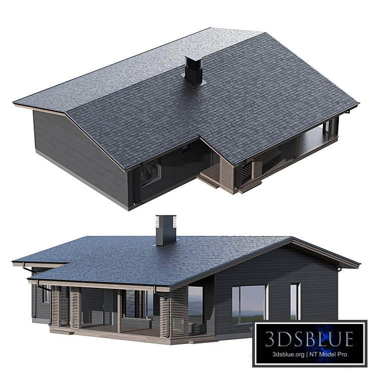 Modern one-story frame house. The roof is covered with shingles (texture). The house is finished with wood, slats and plaster. There is a spacious terrace at the entrance. Inside the house there are partitions and doors. House dimensions: 17.4 m x 14.1 m House height - 6.3m Polys: 86,689 Verts: 47,468