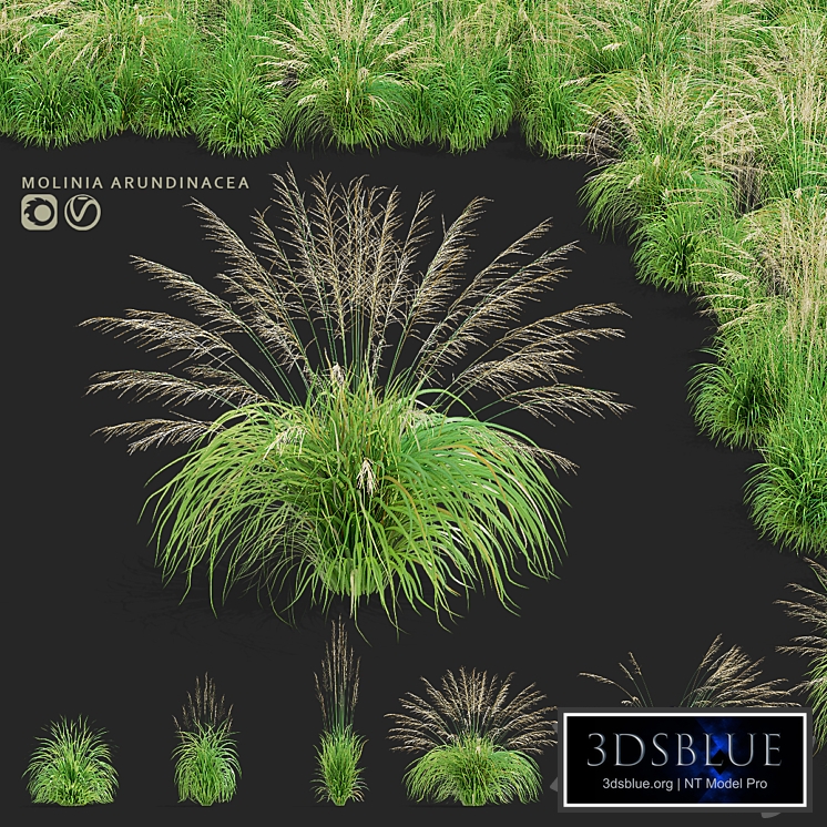 Total Polys 248 272 Verts 386 094 Archive include: 3ds max 2012 Vray 3ds max 2012 Corona OBJ standard material (5 separated files)Ready for Lumion V-ray mat Corona mat Textures Molinia arundinacea 001 Polys: 13519 Size: X: 73 cm. Y: 74 cm. Z: 70 cm. Molinia arundinacea 002 Polys: 17906 Size: X: 54 cm. Y: 56 cm. Z: 101 cm. Molinia arundinacea 003 Poly: 32329 Size: X: 46 cm. Y: 48 cm. Z: 145 cm. Molinia arundinacea 004 Poly: 84246 Size: X: 136 cm. Y: 132 cm. Z: 105 cm. Molinia arundinacea 005 Poly: 100272 Size: X: 177 cm. Y: 167 cm. Z: 128 cm. Have a nice use!