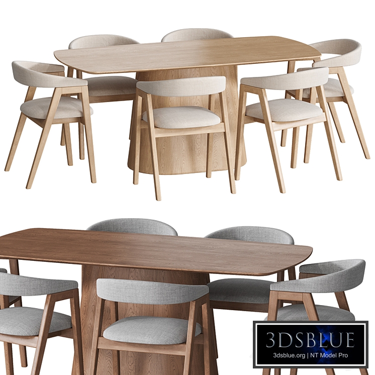 1018 Mount kitchen table Divan.ru Size 180*90*76 See 3 color options - natural wood, walnut, black https://www.divan.ru/product/kuhonnyj-stol-maunt-walnut Trevor the chair Divan.ru Size 55*51*77 cm, color beige, gray, wood, walnut, black https://www.divan.ru/product/stul-trevor-textile-grey In the archive: MAX2016(corona/vray) + OBJ + Texture + mtl 22480 polygons XForm, there is a scan. The pivot is configured. Turbosmooth is loaded (0 iterations in viewport, 1 iteration in render). The OBJ stack contains a chair, table, dining room, Scandinavian, rectangular, minimalism, living room, dining room, boho, japandi, Divan.by , wooden legs, upholstered backrest, rounded corners, divan