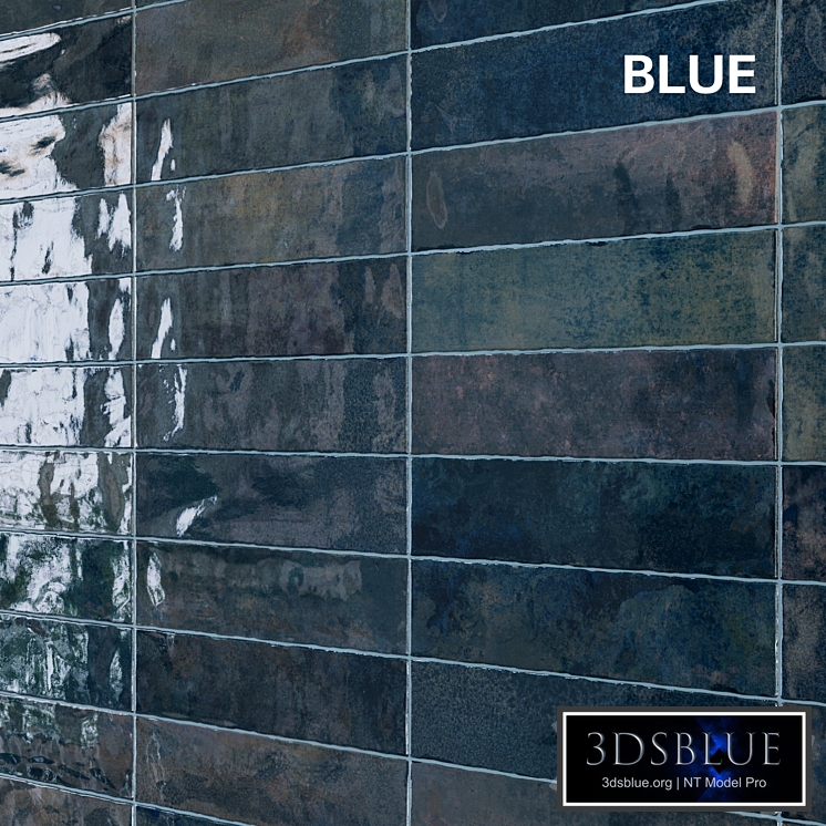 NAIROBI Ceramic collection by Vilar Albaro manufacturer. 5 colors: Blue, Green, Moss, Slate and White. 7.5x30 cm. 2.9x11.8 in. For Corona render, it is recommended to install a version of at least 1.5, since the glossiness of materials is configured considering PBR.