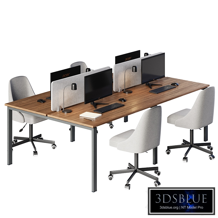 Bench system of office desks on metal supports with felt partitions and decor: Acer monoblock, keyboard, mouse, table lamps, chairs. goes well with these items: https://3dsky.org/3dmodels/show/stellazh_dlia_domashnego_ofisa_s_dekorom https://3dsky.org/3dmodels/show/stellazh_45_s_dekorom_v_dereve https://3dsky.org/3dmodels/show/navesnye_polki_dlia_domashnego_ofisa_ili_kabineta The archive contains .max files 2017 and 2020 versions, FBX file Materials used in the model: CoronaPhysicalMtl - requires CoronaRender at least 7