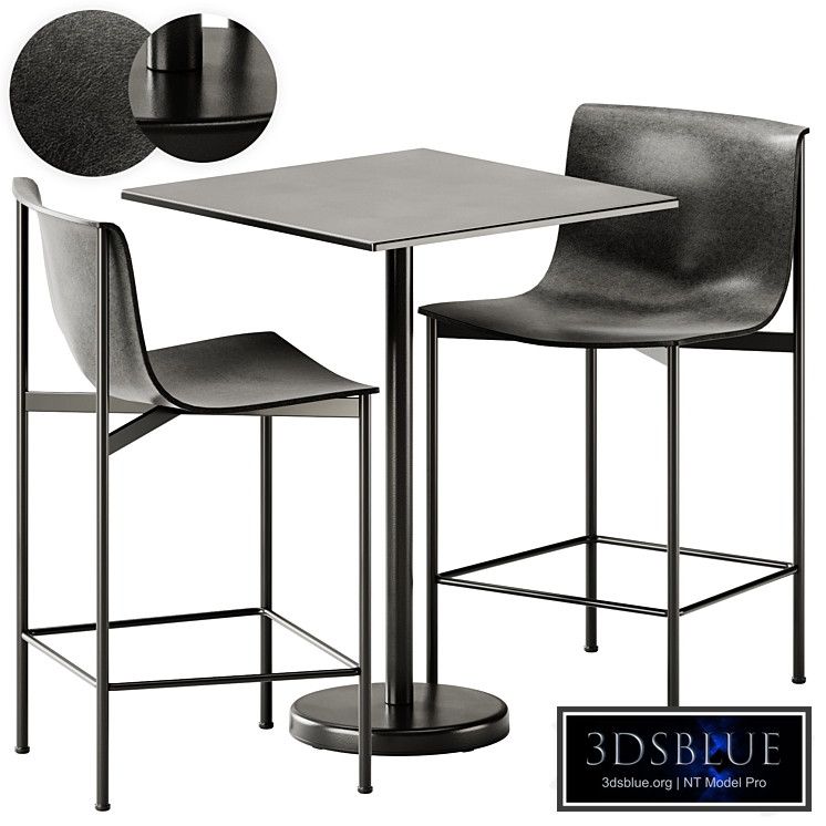 Linear Steel Cafe Table Square by Muuto: Dimensions: 70 x 70 x H 95 cm Ombra Leather High Stool by Lema: Dimensions: 55 x 55 x H 100.5 cm System unit mm / FBX and Obj included / No plugins used.