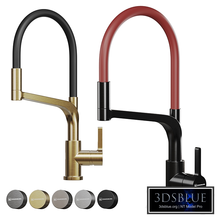 Kitchen faucet Omoikiri Sinto 2 Plus. The scene contains a mixer model and four primitives with configured material options. All elements of the model are connected into a single mesh. Model materials are set up for Corona Renderer - Physical Material. The modifier stack includes Turbosmooth configured for Render Iterations - add the number of iterations to taste - there are 2 iterations in the preview. Link: https://omoikiri.net/smesitel-omoikiri-sinto-2-plus-lg-bl-svetloe-zoloto/