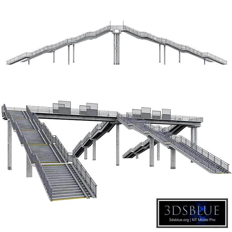 Standard design of a pedestrian bridge across railways. The set includes: - bridge span - landing on the ground - landing on the platform (high/low including an additional section) - fencing section In the archive: - textures with individual names in English - 3ds max 2017 - 3ds max 2020 - obj *TurboSmooth is optionally adjustable Made and tested under Corona 8. Collection: https://3dsky.org/collection/shared/5079486