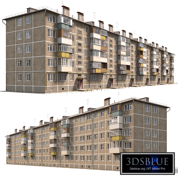 Corona version 6.2 The model uses materials that may not display correctly in very old versions of the engine Panel standard house, series 1-464 A-15. USSR 5 floors, 6 entrances, pitched roof. Suitable for close-ups. 3ds max 2021, 2018, FBX Unit scale: sentimeters