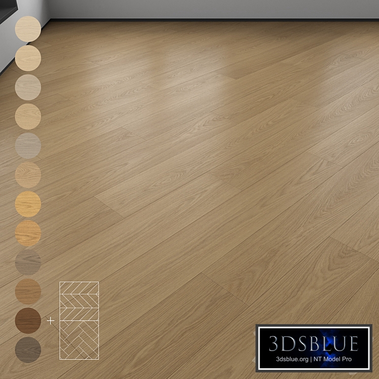Parquet 12 colors Layout: herringbone, chevron and linear. - linear 1500 x 220 mm - chevron and herringbone 600 x 120 mm - 10 textures of each color with reflection glossiness and normal maps (total 126 textures per folder) - Texture resolution ~ 600x4000 px - texture in the form of plates, ready to work with MultiTexture - 3 floor layouts 10 x 10 m -The material was created without plugins by the VrayMultiSubTex/CoronaMultiMap map (analogues of MultiTexture) Those who work in V-Ray versions lower than 3.1, be careful, in the materials in the BRDF section there is Microfaset GTR ( GGX ), if your version is older than 3.1, then the BRDF field will be empty. Choose Blinn, Phong or Ward - whichever suits you best For Corona render, it is recommended to install a version of at least 1.5, since the glossiness of materials is configured taking into account PBR