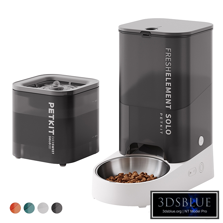 Other for pets: https://3dsky.org/collection/shared/5407320 1. Petkit Eversweet Solo SE Drinking Fountain https://petkit.com.ru/product/pitievoy-fontan-solo-se Drinking fountain for pets with filtration system (filter) Smart mode Size: 160 x 160 x 154 mm 2. Petkit Fresh Element Solo Automatic Feeder for Cats and Dogs https://petkit.com.ru/product/avtomaticheskaya-kormushka-dlya-koshek-i-sobak-petkit-solo Automatic Smart Feeder Size: 316 x 167 x 296 mm Bowl material: stainless steel Color palette of four colors: white, black, green, orange Main material: matte transparent ABS plastic Minimalistic compact modern design _________ ! Renders are made in Corona, materials are converted to Vray using Vray-converter ! __________ All elements of the model have been unwrapped, textures and materials have logical names. __________ For Corona render, it is recommended to install version no lower than 1.5, since the glossiness of materials is configured taking into account PBR Those who work in V-Ray version lower than 3.1, be careful, in the materials in the BRDF section there is Microfaset GTR (GGX), if your version is older than 3.1, then the BRDF field will be empty. Select Blinn, Phong or Ward - what is preferable for you