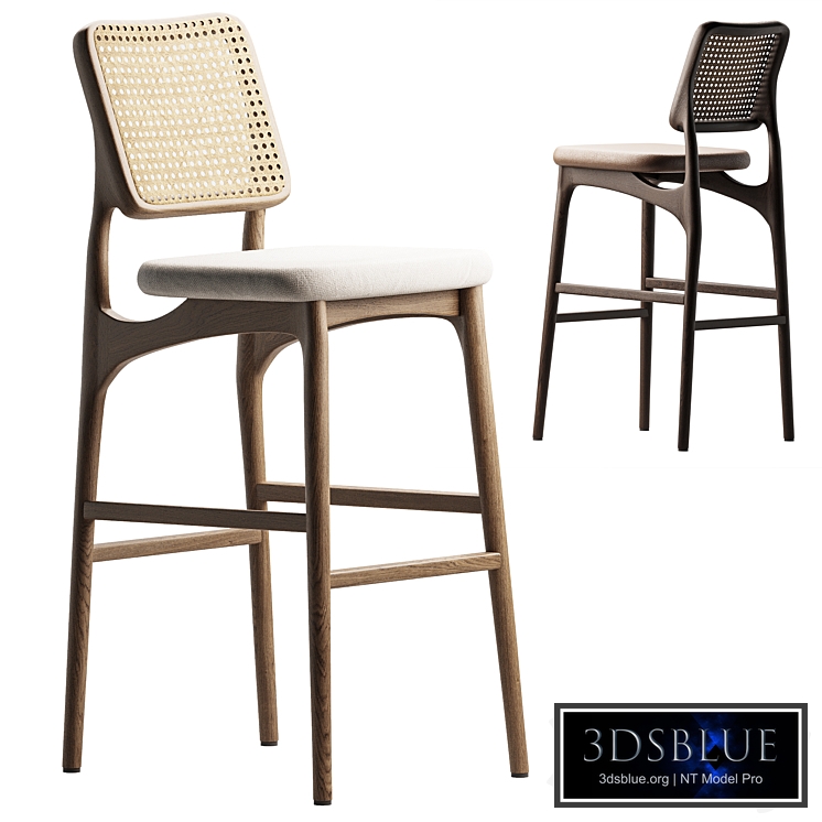 Name: Pitanga Cadeira Type: model Format: 3Ds Max 2016 Export: OBJ Render: Corona Poly: 9588 Verts: 9738 Matclasses: CoronaLegacyMtl Units: Millimeters Dimension: 854.08 x 537.3 x 1016.06 https://carvalholeite.com.br/produto/banqueta-pitanga Scandinavian style bar stool with wicker back and soft seat. The frame is made of natural wood, the back is decorated with rattan weaving, and the seat is upholstered in textile fabric. The design combines elegance and comfort, ideal for modern interiors, bar areas and kitchen islands. Format: 3ds Max 2016, Corona Renderer Scale: 100% real Texture resolution: 4K Polygons: Optimized for rendering Materials: Wood, rattan, textile File contains: Model, textures, materials