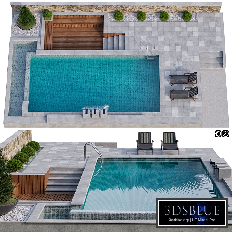Pool 10 Polys: 617397 Verts: 841839 15 * 12 M2 _____________________________________ - Model made in 3DSMAX 2016 - Model prepared for V-Rayand Corona render - Includes Format OBJ - Model is built to real-world scale - Units used: CM - Doesn have third-party renderer or plug-ins - Each model is a separate object!