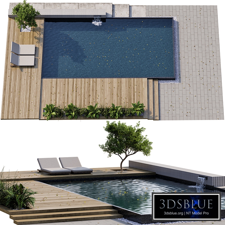 Pool 27 Polys: 1190609 Verts: 1267427 8.5 * 13.5 M2 _____________________________________ - Model made in 3DSMAX 2016 - Model prepared for V-Rayand Corona render - Includes Format OBJ - Model is built to real-world scale - Units used: CM - Doesn have third-party renderer or plug-ins - Each model is a separate object!