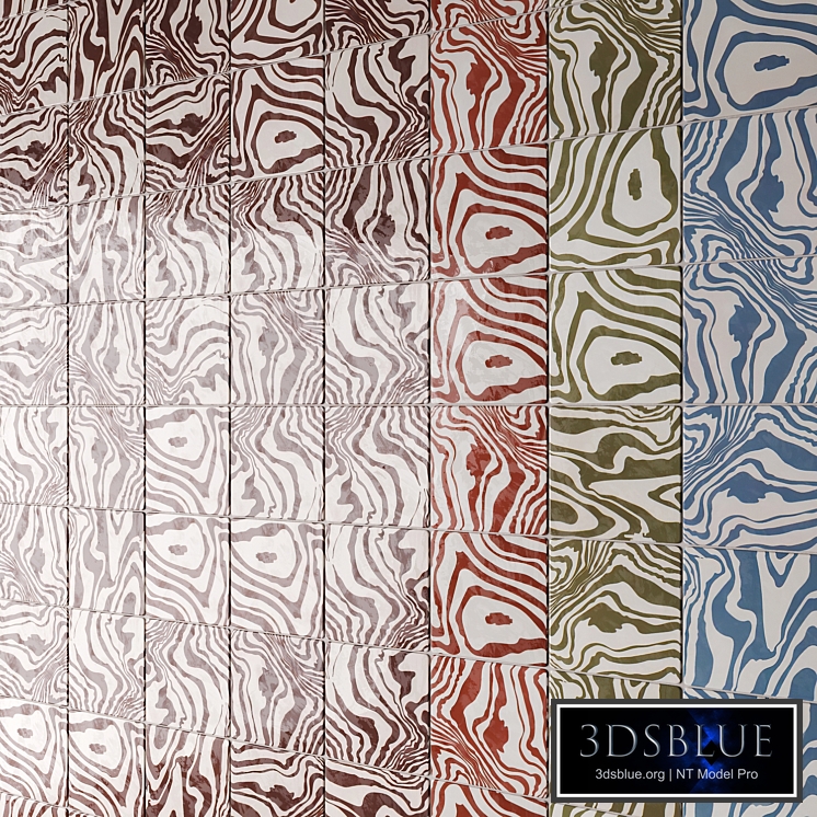 Pour glossy glazed ceramic tiles by Henry Holland Studio in four colors Dimensions: 13 x 13 cm The scene shows tiles with grout material in a sheet of approximately 3000 x 3000 mm.