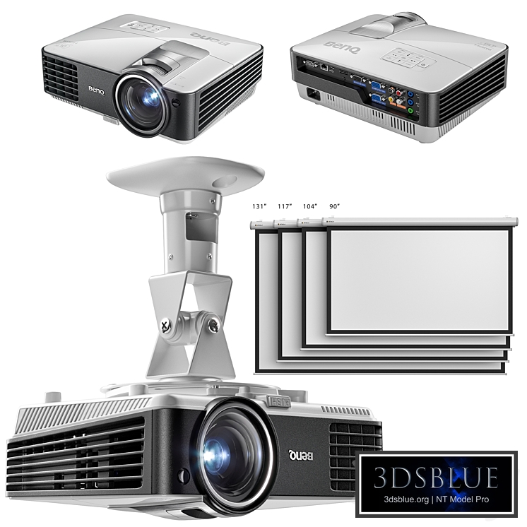 BenQ Home and Office Projector. Also in this set: - Ceiling / wall mount Hama. - 4 projection screens DIGIS Ellipse: diagonal 90 "(210x240cm) diagonal 104 "(240x214cm) diagonal 117 "(270x221cm) diagonal 131 "(300x238cm) 16: 9 wide screen HDTV Renderers: Corona v2.0 V-ray v3.4 Ready for rigging. Objects are cleary separated and named. FBX included. ~ 130K polys.
