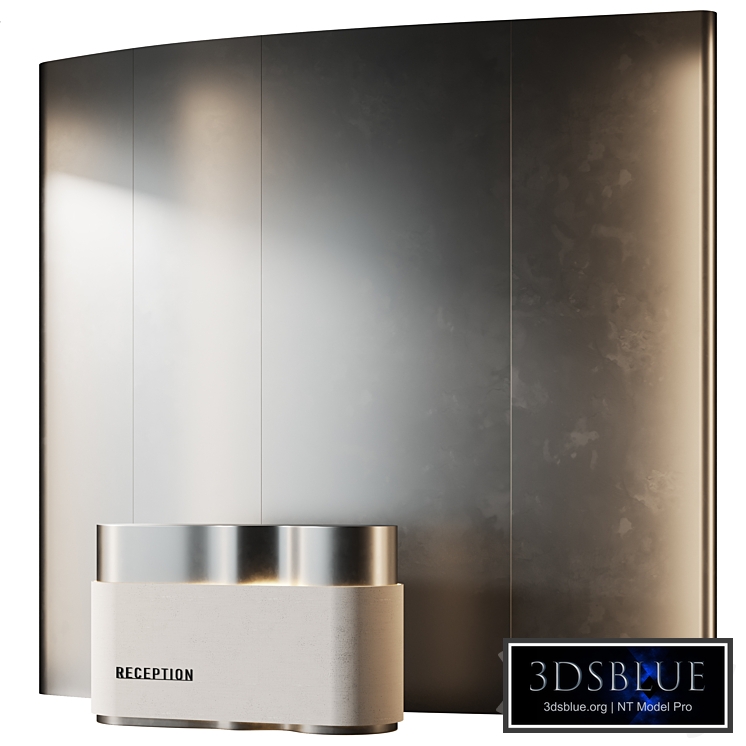 ATTENTION! Made with Corona 8 The model uses materials that may not display correctly in very old versions of the engine, for versions below Corona 7 use CoronaLegacyMtl, it is present in the scene. Collection of similar models: https://3dsky.org/collection/shared/5302869 Materials: Corona PhysicalMtl / Corona LegacyMtl Units: Millimeters More models: https://3dsky.org/users/slavik2821 UVs: All Unwrapped UVs Size: 1700mm x 4300mm x H4000mm Polys: 16078 Reception desk, reception desk in a modern style, decorative wall, metal decorative wall, white reception desk. Ideally complements the modern and minimalist interior of the office and lobby. Suitable for styles: minimalism, japandi, wabi sabi. Wall size: H4000mm x 4300mm Reception desk size: H1100mm x 1800mm x 600mm