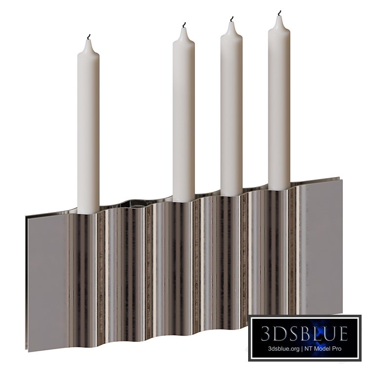 Reminiscent of a ripple across a glassy lake, the Ripply Candle Holder reflect the environment through their curved forms. Made from mirror polished stainless steel, these soft shapes transform an industrial material into something almost ephemeral. Existing as a sculptural form, function is only revealed when placing a candle into one of the widening voids between the sheets of steel. To bounce daylight or candlelight, these unique objects create a magnetic pull. Dimensions: 32.9 x 2.7 x 32.4 (cm)
