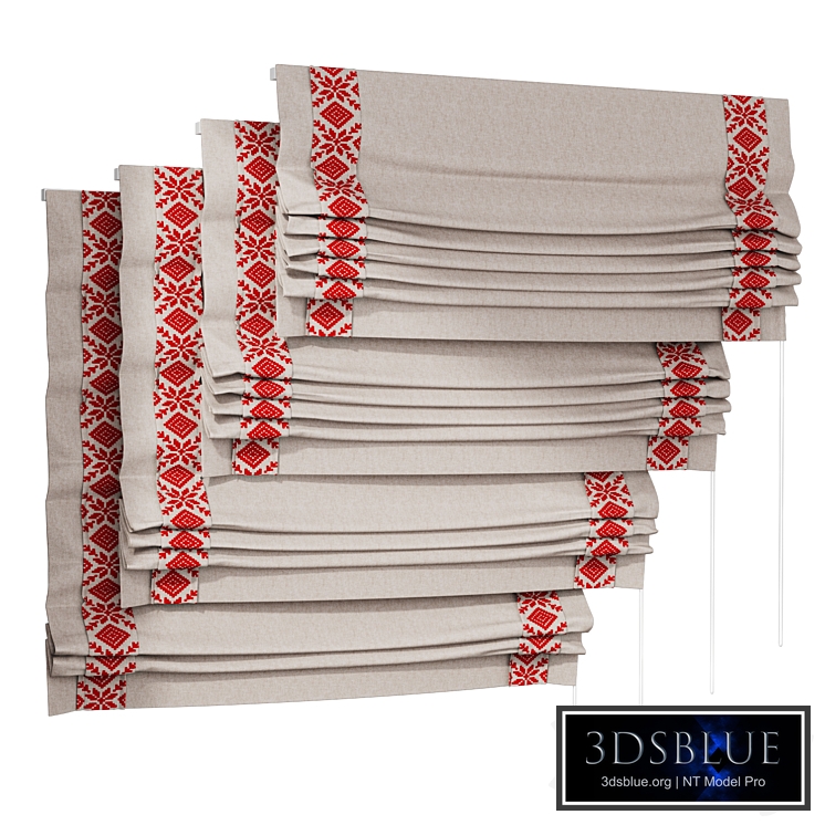 Roman blind, in 4 positions. Russian ornament. Width 160cm. My other curtain models http://3dsky.org/collection/shared/5369061 The scene contains a TurboSmooth modifier - 1 Render iters, the stack is not collapsed. Render: Corona (9) CoronaLegacyMtl materials may not display correctly in very old engine versions