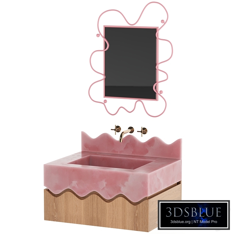 "Pink Wave" - designer vanity unit with sink An unusual vanity unit with a sink in a modern playful style, made in a combination of rose quartz texture and natural wood. The wavy shape of the facade and bowl adds dynamics and lightness to the interior, and the warm wood bottom harmoniously balances the bright top. Jan Reek natural teen The set includes 2 sink options, white and pink quartz. The pink quartz material requires slightly more resources for calculation. To open the drawer, simply pull the wavy front and the other parts, using the ties, pull the front.